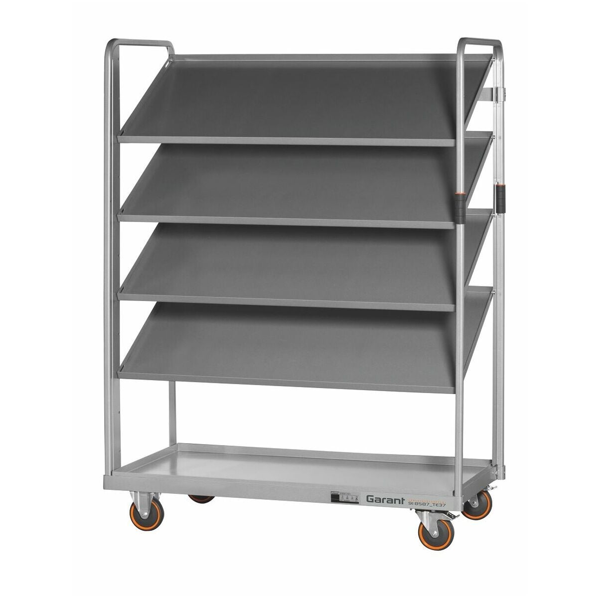 Handtag med Haptoprene-inlägg och slagtålig polypropylen. 2 fasta och 2 svängbara hjul (med broms).