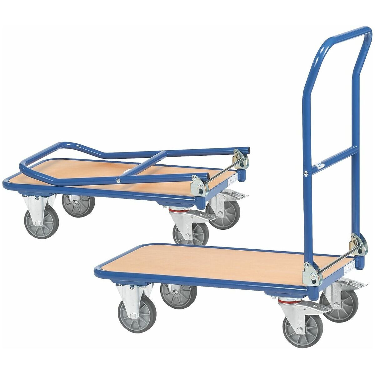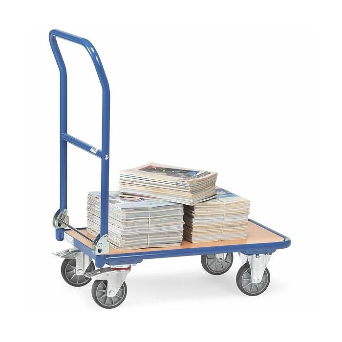 Lastplan av träfiberskiva. TPE-däck och rullagrade nav.