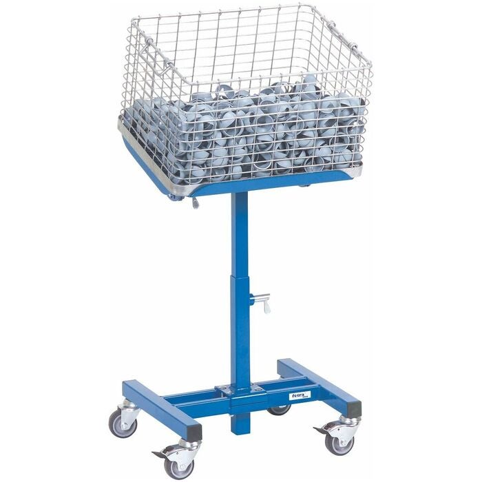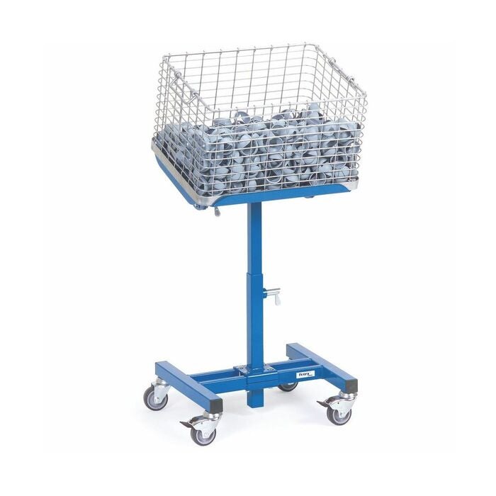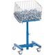 Svetsad stålplåtkonstruktion med plattform av stålplåt som underlag för plastlådor och trådkorgar.