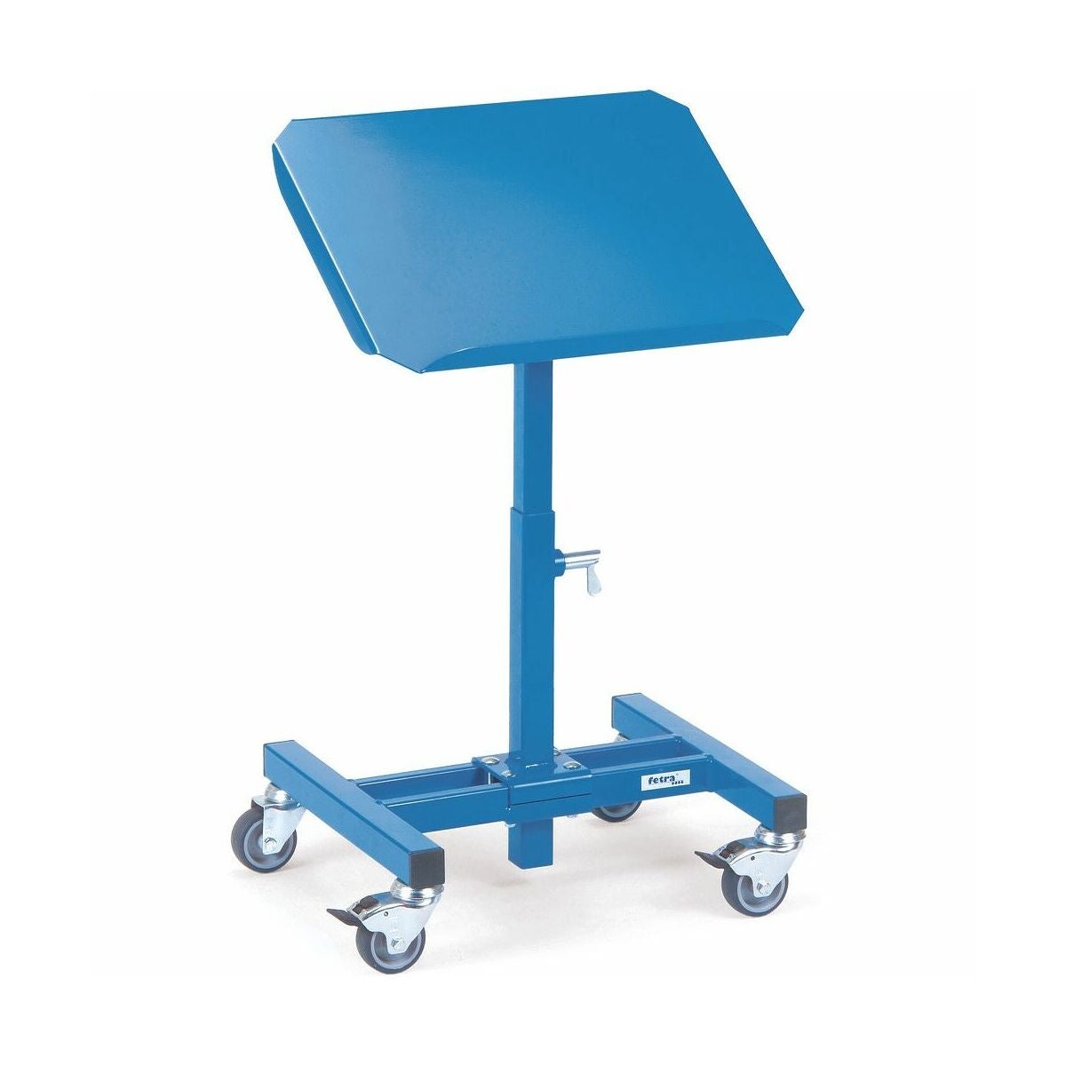 Lutningsbar plattform av stålplåt med stoppkant på en sida.