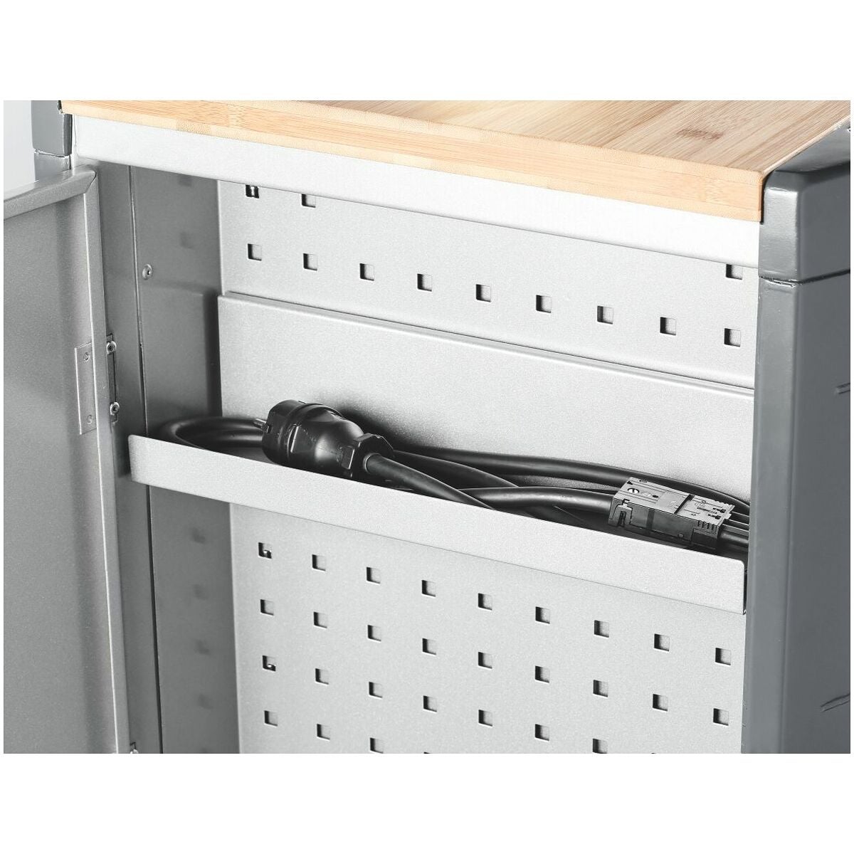 Perforerad panel av stålplåt med □ 9×9 mm hål i 37 mm raster. Verkstadsvagn XL ToolCar nr 914590.