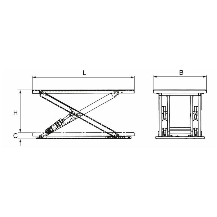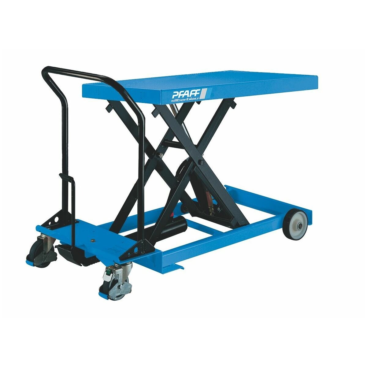Mobilt lyftbord i robust ensaxskonstruktion med solida stålsaxar. Svängbar plattform med mekanisk låsning för säkert underhåll. Kompakt chassi med låg totalhöjd, styr- och bockrullar av polyamid med underhållsfria kullager, parkeringsbromsar på svängbara hjul. Manuell hydraulik med fotspak. Hög säkerhet tack vare överlastventil och sänkningsbromsventil. Svängbara hjul ⌀ 150 mm, lasthjul ⌀ 200 mm. Rullbredd 50 mm.