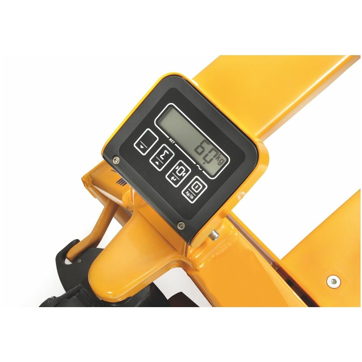 Våg med vägningsområde 1−2000 kg, med en noggrannhet på ± 2 kg. Skalsteg 1 kg. LCD-display, pekskärm med TILL/FRÅN- och tareringsknapp, strömförsörjning via 4 st 1,5 V AA-batterier (ingår i leveransomfattningen).