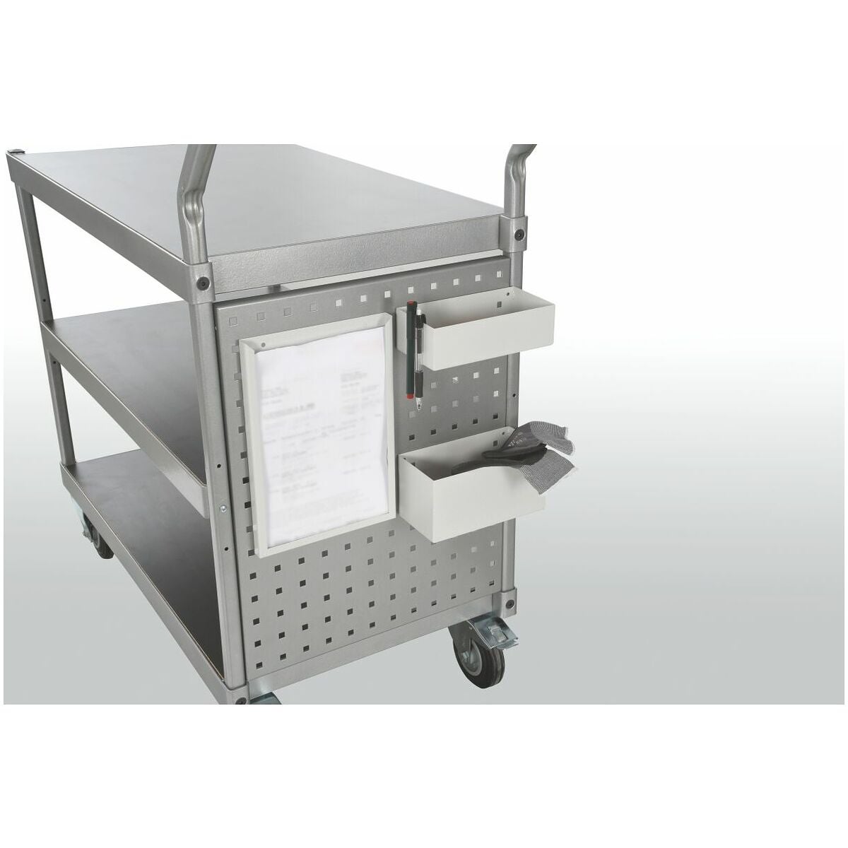 Av stålplåt, skruvas fast i GARANT bords- och etagevagnar.