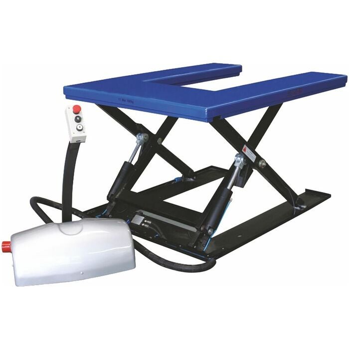 Stabil skärstagning med plattform av slät stålplåt. För steglös lyftning och sänkning av last, pallgods, gallerboxar och för nivåutjämning vid materialbestyckning på maskiner. Användning på industrigolvet utan gropinstallation tack vare den extremt låga bygghöjden. Säker och riskfri betjäning med funktionerna På/Av i dödmanskoppling och nödströmbrytare. Överbelastningsskydd genom inbyggd tryckbegränsningsventil. Optimal säkerhet vid drift och underhåll genom integrerad rörbrottsventil och underhållsstöd.