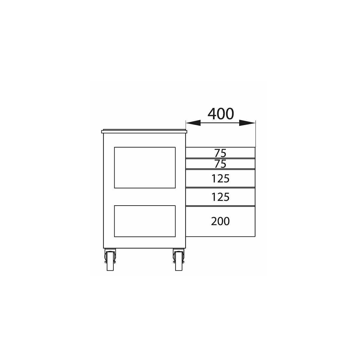 lådans fronthöjd: 75; 75; 125; 125; 200 mm