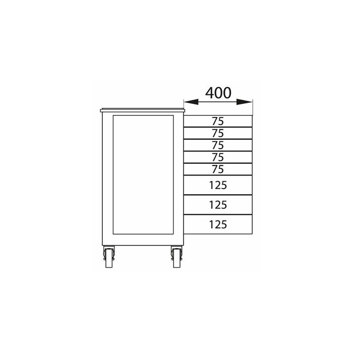 lådans fronthöjd: 75; 75; 75; 75; 75; 125; 125; 125 mm