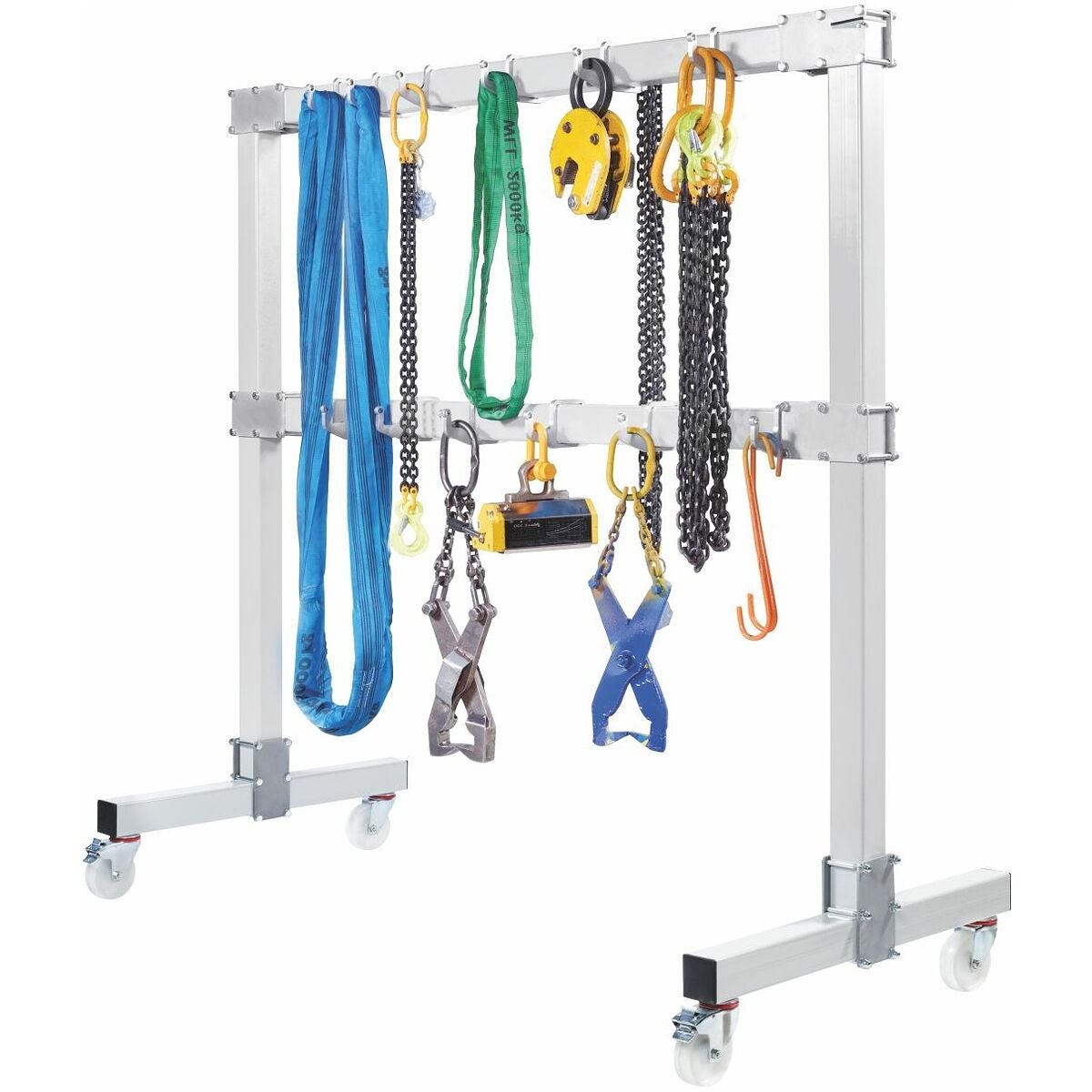 Bestående av 4 säkringsstänger inklusive påsvetsad kätting. Säkringsstängerna förskjuts med upphängningskrokarna. Hänglås med max. bygeldiameter 7 mm kan användas.