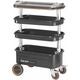 Teleskopverkstadsvagnen har en stabil, neddragen stålplåtskonstruktion med rymligt bottentråg, två inbyggda fack och lock med skyddskant runt om samt underlag av X-ABS.
