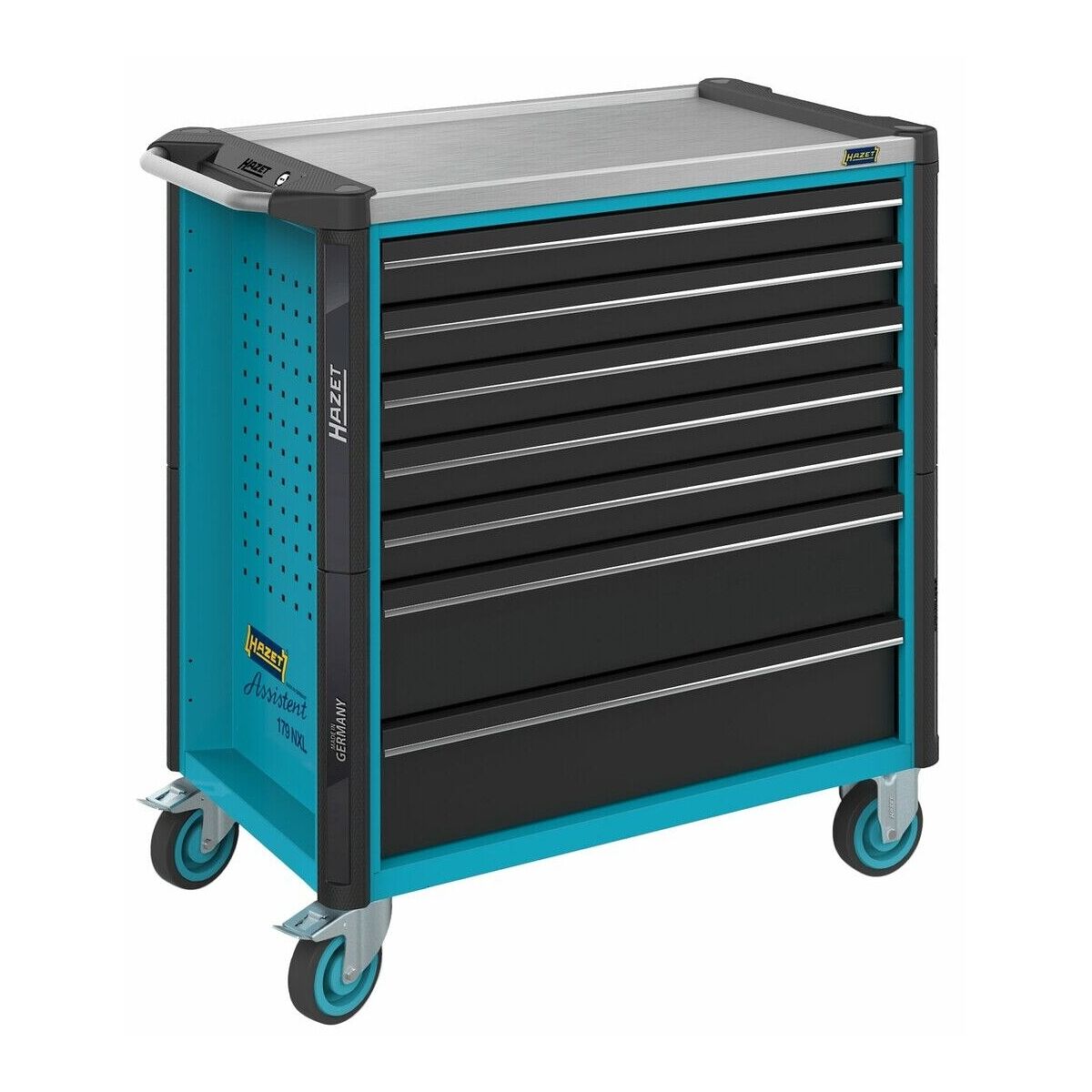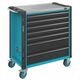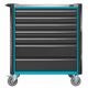 Robust verkstadsvagn med dubbelväggig konstruktion. Stomme med genomgående kantskyddshörn. centrallåsning med cylinderlås och ömsesidig utdragsspärr. Utdragslådor med självindrag. Arbetsytan komplett tätad, vagnen invändigt skyddad mot utrinnande vätskor.