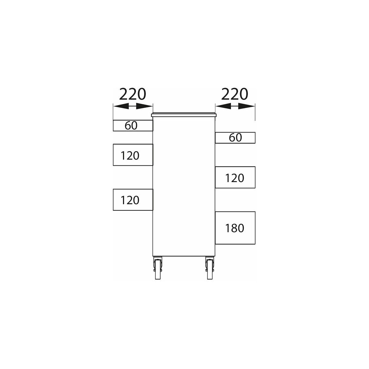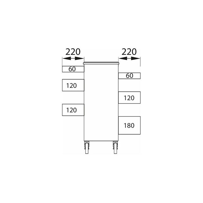 lådans fronthöjd: 60; 60; 120; 120; 120; 180 mm