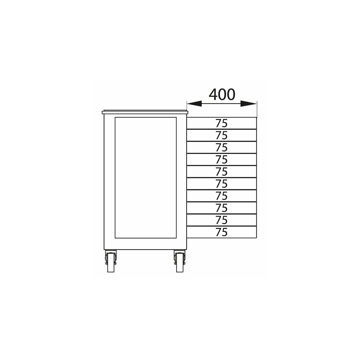 lådans fronthöjd: 10 × 75 mm