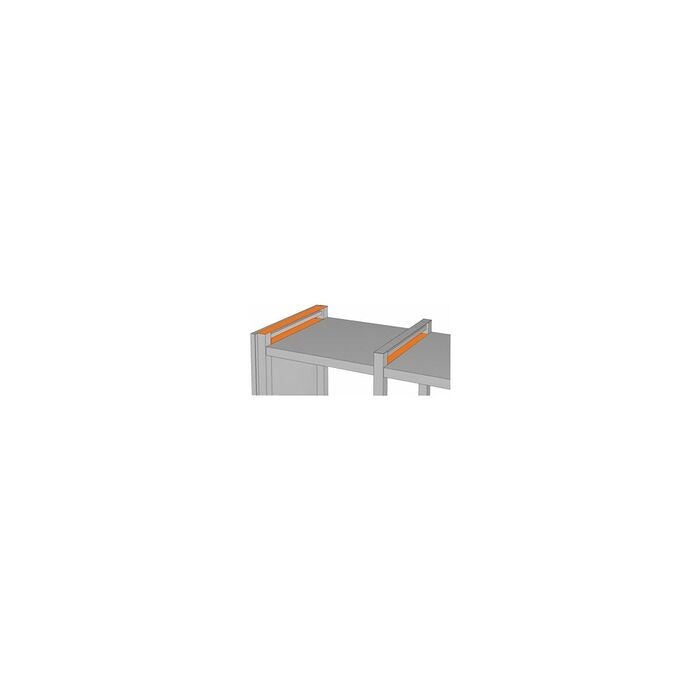 Ändplåten för sidovägg kan bara monteras på stolpramar som är anslutna med en sidovägg nr 935510; 935511, eftersom plåtskivan från hyllan når ända fram till sidoväggen här (kan inte kombineras med plåtbeklädnaden nr 935040; 935045 i stolpramen).