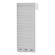 Jalusi av ljusgrå plastlameller, låsbar med cylinderlås. Jalusilådan sätts ovanpå och löper i sidostyrningar framför hyllsystemet.