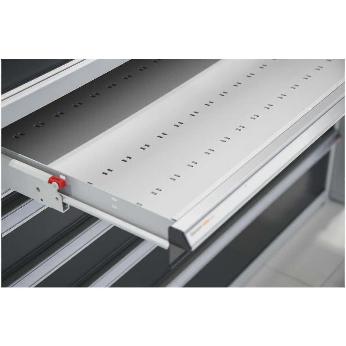 Stansade hål för fastsättning av slitsade skiljelister i 50 mm- eller 2G-raster (lådfronthöjd 75 mm och uppåt).