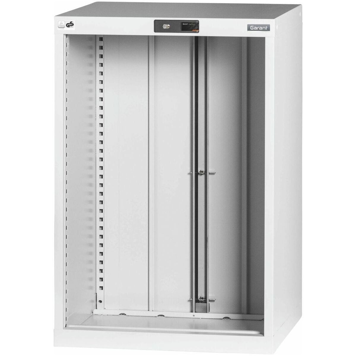 Verktygsskåpstomme i 30×24G, passar till utdragslådor 26×20G. För insättning av lådor i 25 mm raster. Hurts centralt låsbar med stiftcylinderlås.
