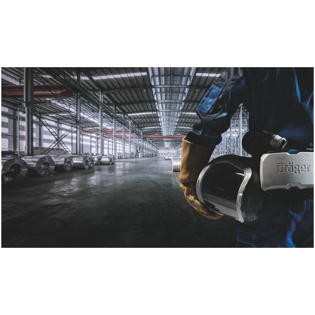 Der Dräger Xplore® 8000-hjälm rekommenderas för industrin, eftersom man där använder ett extra ögon- och huvudskydd. Hjälmen skyddar mot mekanisk och kemisk påverkan. Hjälmen har ett uppfällbart polykarbonatvisir som lämpar sig för glasögonbärare och för personer med skägg.