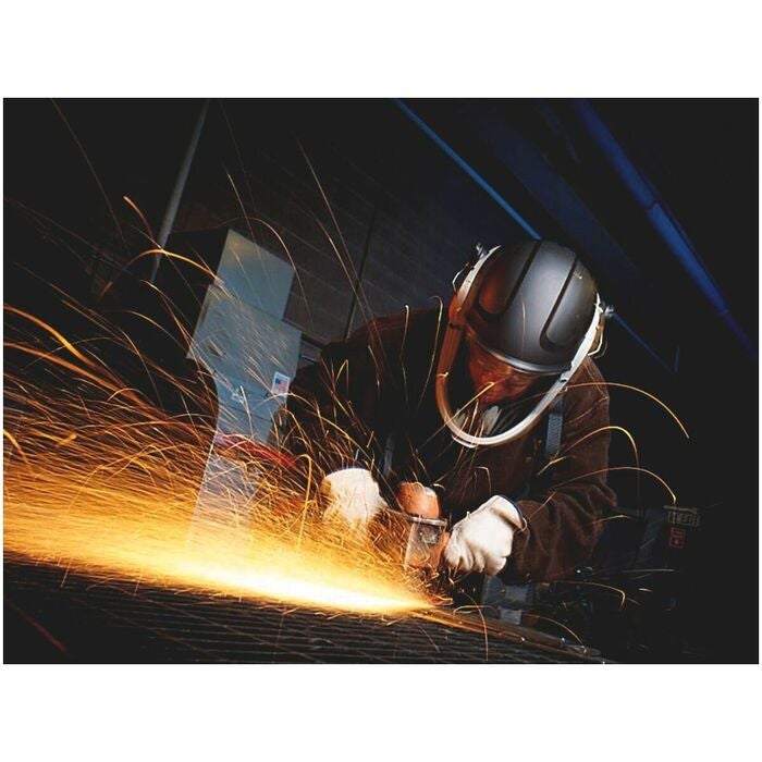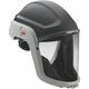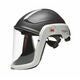 Hjälmhuvuddelen kombinerar ett smidigt andningsskydd med ögon- och ansiktsskydd enligt EN 166 och ett huvudskydd enligt EN 397. Visiret i klar polykarbonat skyddar mot mekaniska och kemiska faror. Vridreglage/spärrhjul för snabb och individuell inställning efter storlek.