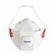 Den böjliga näsbygeln och det mjuka nässtödet inuti masken garanterar en säker passform utan tryck och svarar dessutom för god tätning. På så sätt ger masken tillförlitligt skydd mot fasta och vätskeformiga aerosoler. Den flexibla och genomgående textilhjässremmen ger en bekväm och säker passform och möjliggör en extra komfortabel av- och påtagning av andningsskyddsmasken.