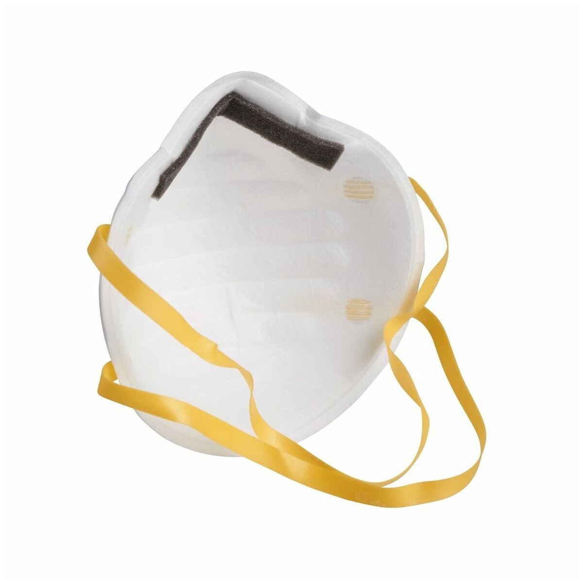 Dien här FFP1-masken filtrerar bort minst 80 % av alla partiklar från luften och skyddar därmed mot flytande och fasta aerosoler. Andningsskyddsmask i skyddsklass FFP1.