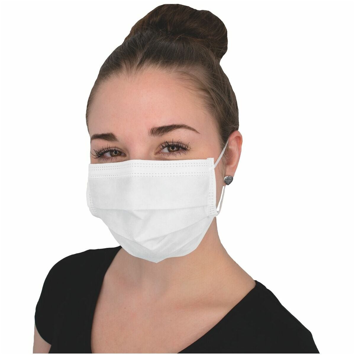 Medicinsk ansiktsmask bestående av 3-skikts nonwoven: Integrerad, dold näsbygel: Hög skyddsnivå genom optimal anpassning till ansiktsformen. Elastiska mjuka band: Runda gummiband för hög bärkomfort samt snabb och enkel på- och avtagning av masken.