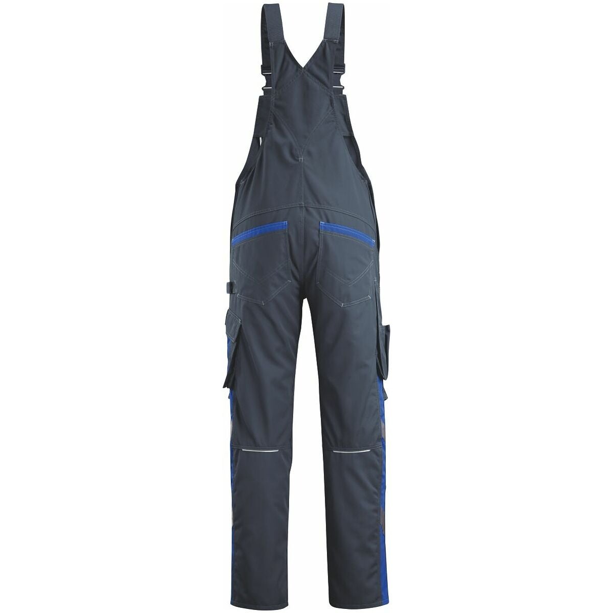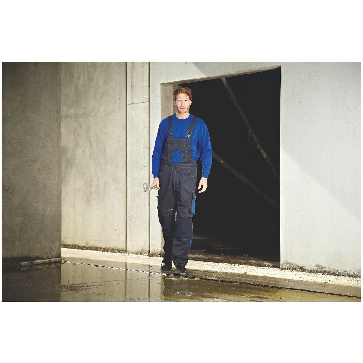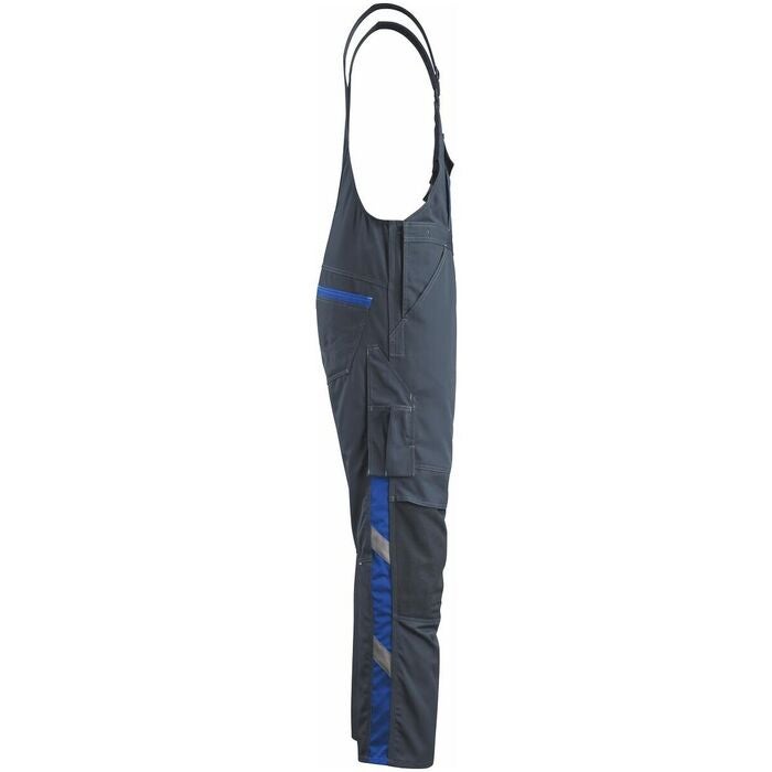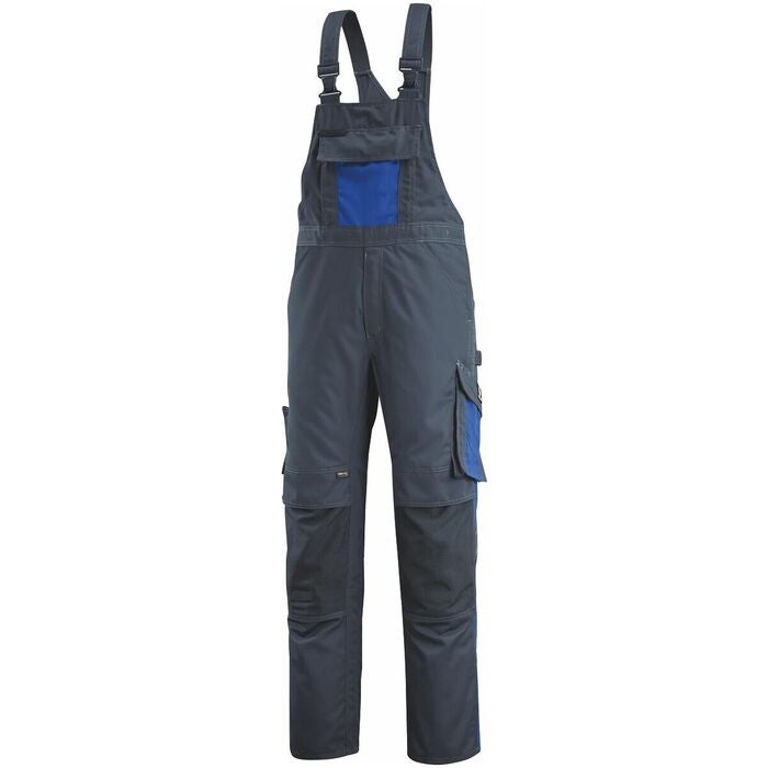 Hängselbyxa i färgkombination kornblå/svartblå hittas under nr 091479.