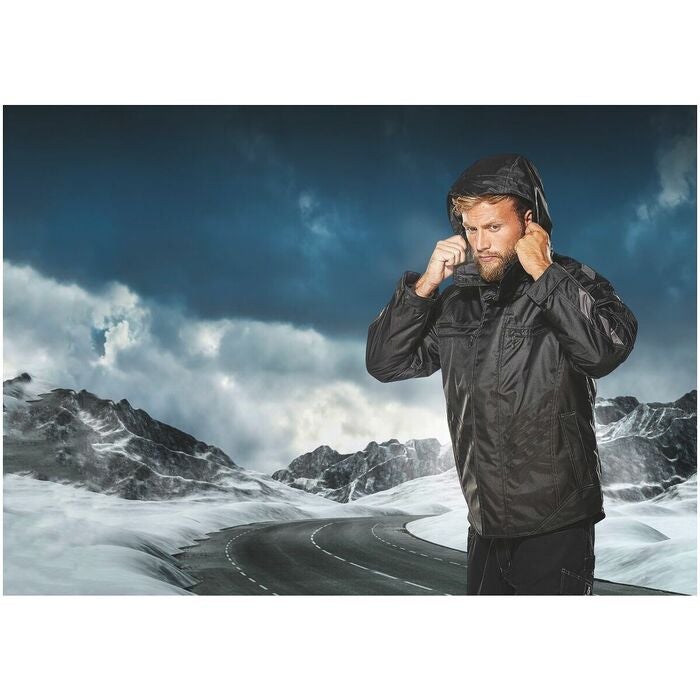 Andningsaktiv vinterjacka med avtagbar huva. God passform genom förformade ärmar och breddreglering vid linning och manschetter. Hög bärkomfort tack vare kviltat fleeceinnerfoder.