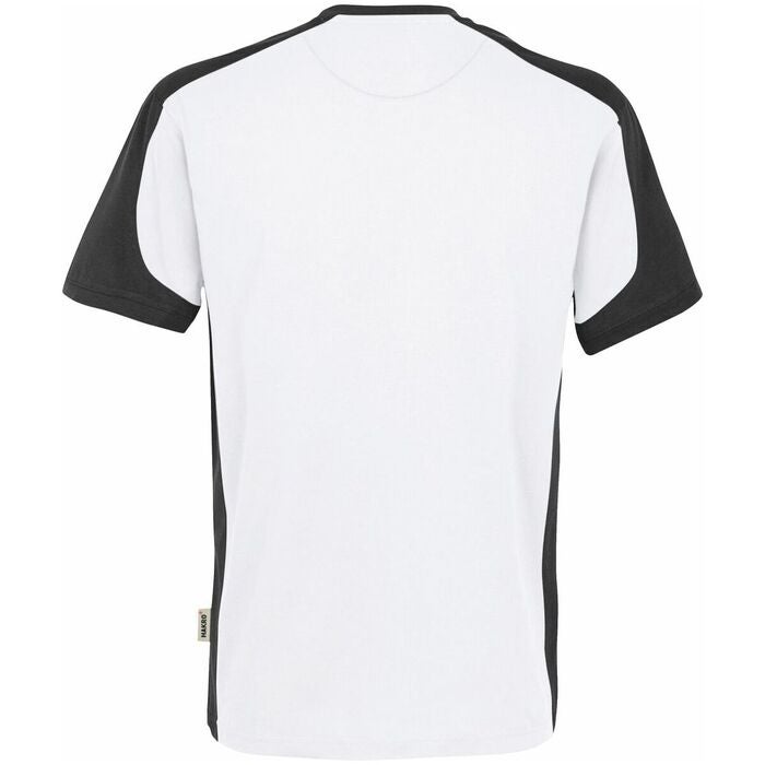 Tvåfärgad funktionell t-shirt av mjukt, lättskött och slitstark Performance-materialmix MIKRALINAR®. Kontrasterande färger på sidorna, axlarna och ärmarna. Med dubbelsöm vid axlar, ärmar och midja.