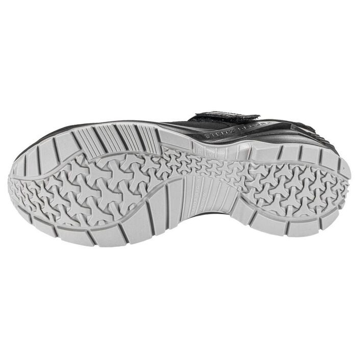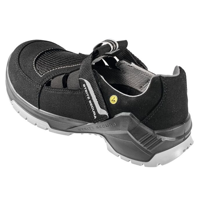 Skyddssandal i VARIO DYNAMICS-familjen med kardborrbandslås och ovanmaterial av funktionstextil med öppna celler. Med SECURA VARIO® häldämpning.