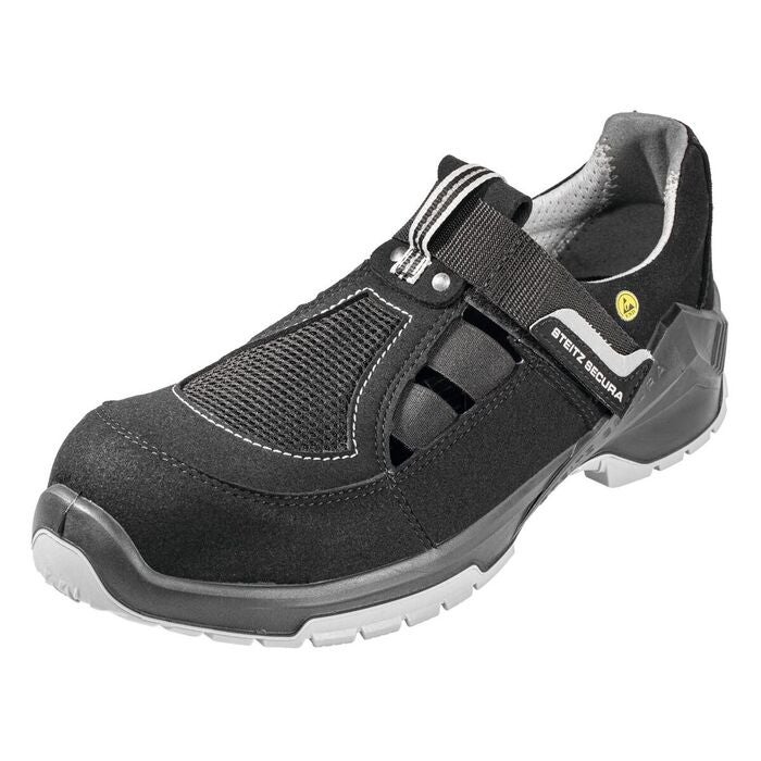 Skyddssandal i VARIO DYNAMICS-familjen med kardborrbandslås och ovanmaterial av funktionstextil med öppna celler. Med SECURA VARIO® häldämpning.