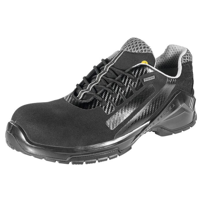 Skyddssko med GORE-TEX® -membran för enastående klimatkomfort. Överskottsfukt och -värme leds snabbt ut. Det vattengenomsläppliga Waterprooflädret bidrar till ett optimalt klimat inne i skon.