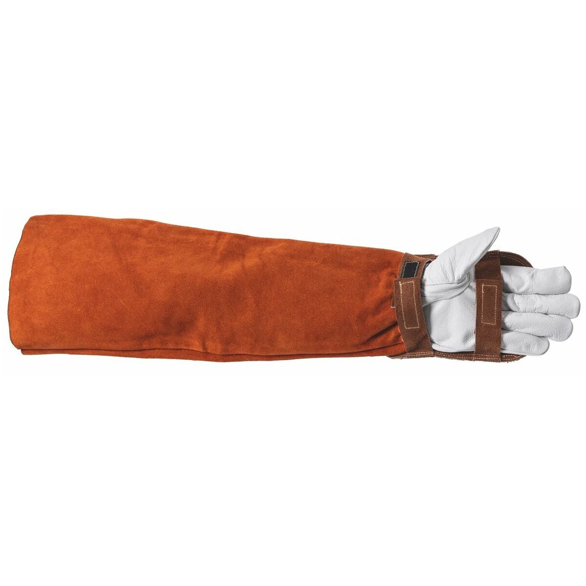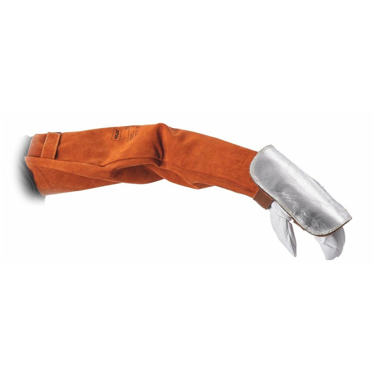 Svetsararmskydd av oxspaltläder med KEVLAR®-sömmar. Lädertjocklek ca 1 mm. Med kardborrbandslås och elastisk