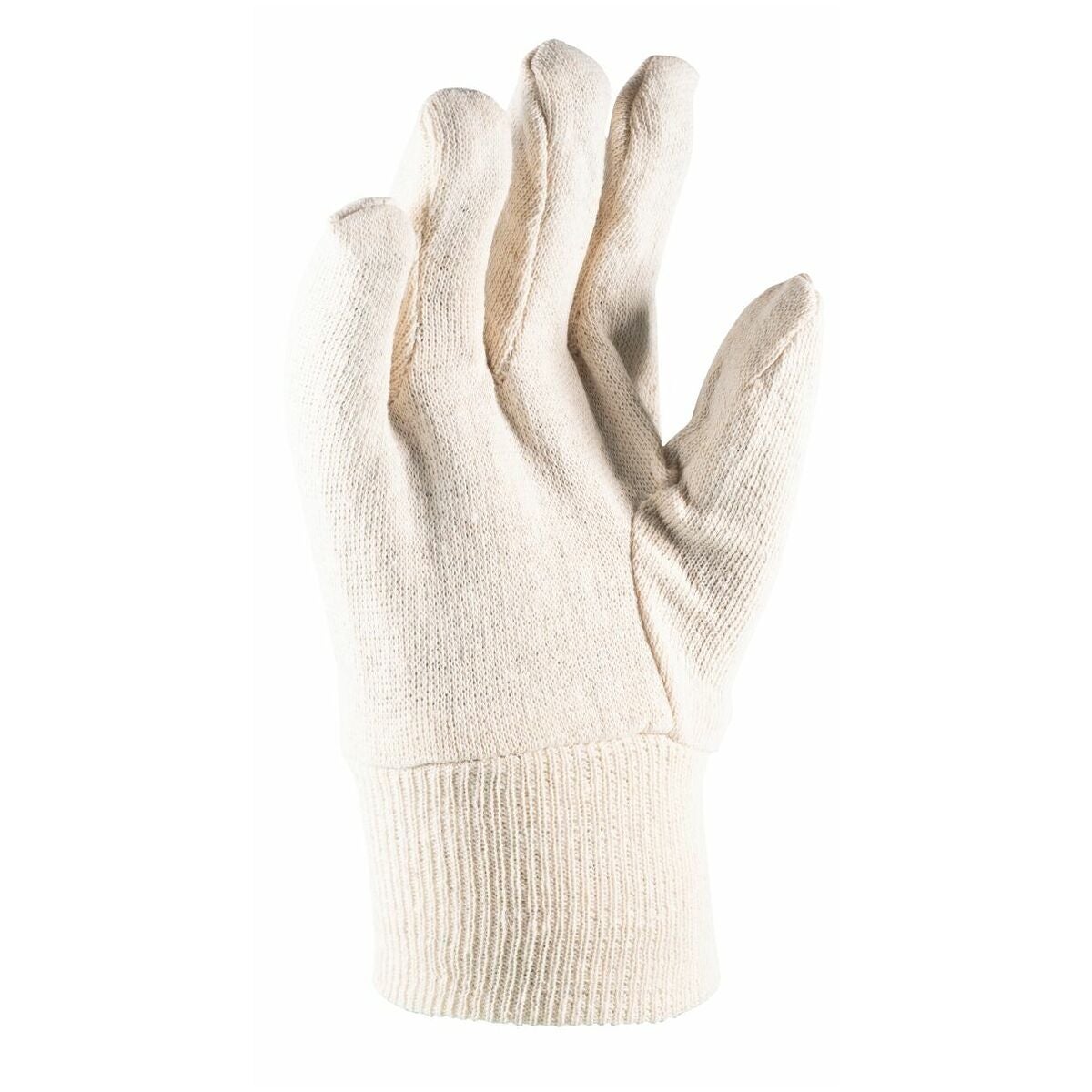 Handskar 5102 av bomullsjersey med stickad linning och uppruggad inneryta.