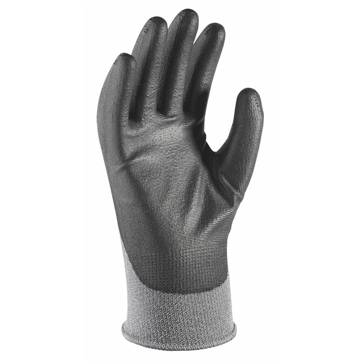 Sömlöst stickade skärskyddshandskar för daglig användning. Med motståndskraftig polyuretanbeläggning.