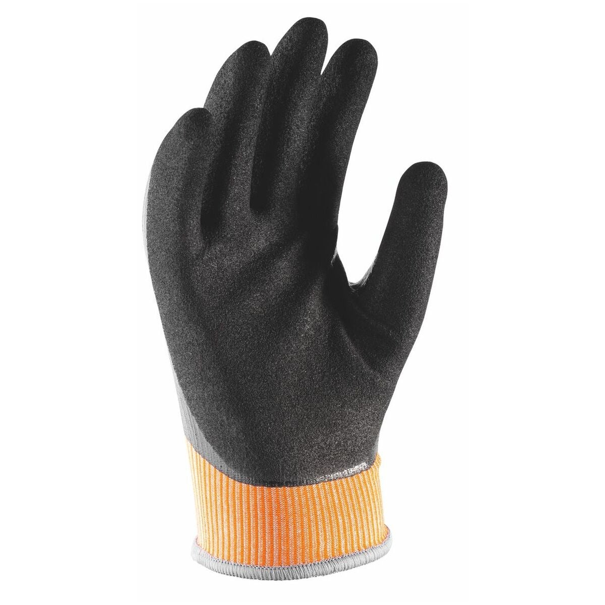 Tätt anliggande och extremt bekväm genom 18 gauge-stickningstekniken. Behaglig nitrilmikroskumplastbeläggning som ger en synnerligen god bärkänsla och hög fingerrörlighet. Det gör dem mycket lämpliga för exakt hantering av små skarpkantade delar. Genom beläggning helt i nitril upp över fingerlederna mycket lämpliga för oljiga miljöer. Ett andra beläggningsskikt av sandad nitril på handflatan och fingrarna ger ett mycket säkert grepp. Med förstärkt tumveck för längre livslängd.