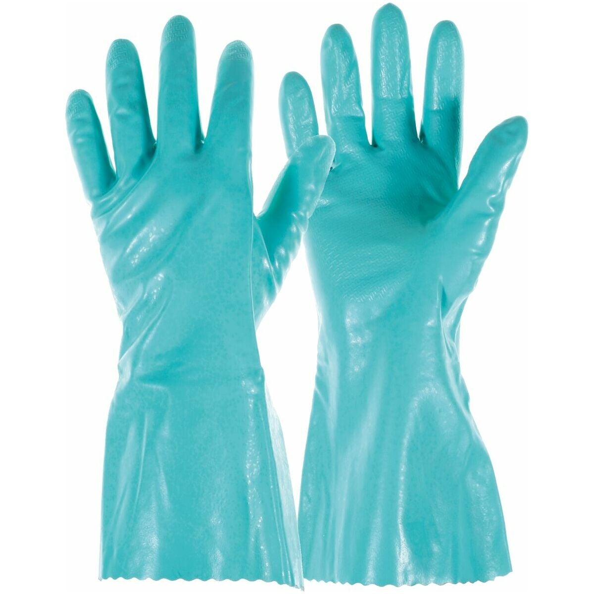 Kemikalieskyddshandske Stansolv AK22, med innerhandske av stickad bomull för högsta komfort. Nitril, EN 374, tjocklek 0,85 mm, vätsketät, silikonfri, livsmedelsgodkänd enligt FDA, ytterst god mekanisk beständighet. Längd 35,5 cm, CE 3121.