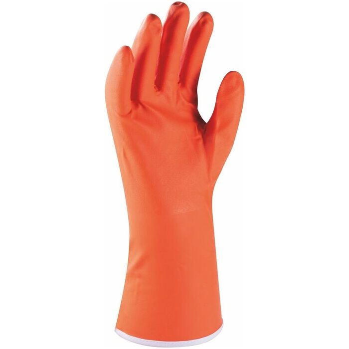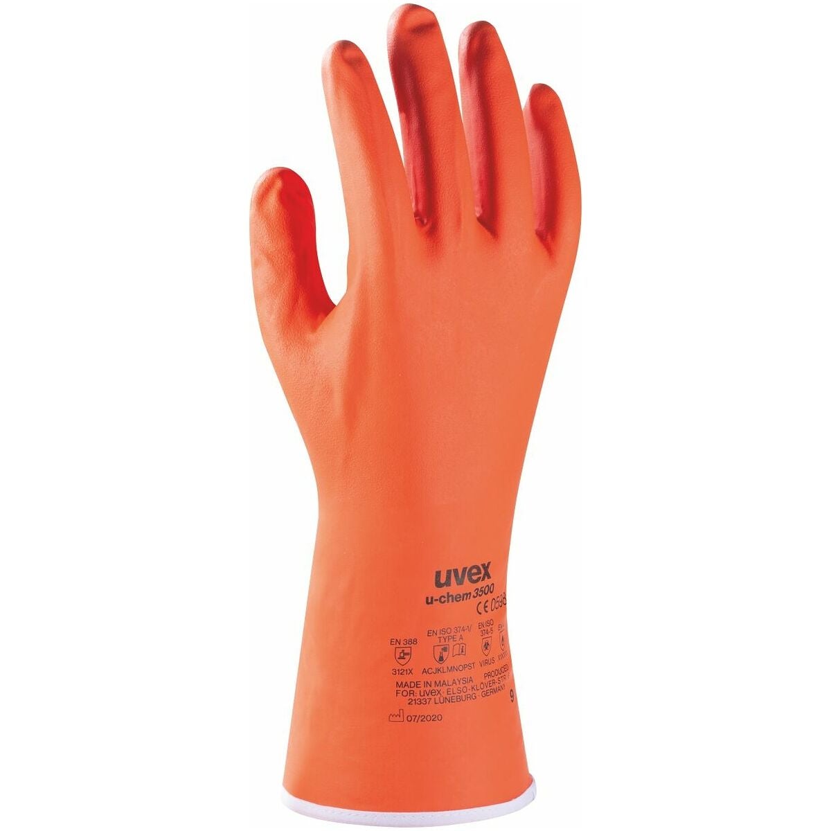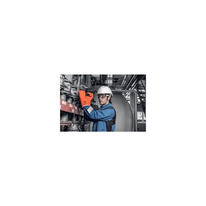 uvex u-chem 3500. Genom kombinationen av nitrilgummi och kloropren ger den här handsken ett mycket bra skydd mot många olika kemikalier. Den har mycket god beständighet mot aceton, rengöringsmedel, lim och lösningsmedel. God bärkomfort tack vare det sömlösa bomullsfodret. Säker hantering av varma föremål ned upp till 100 °C kontaktvärme.