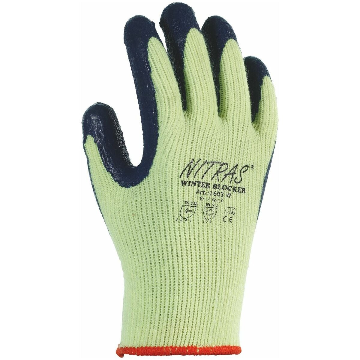1603 W. Sömlös köldskyddshandske med latexbeläggning. Den räfflade beläggningen ger ett mycket bra grepp vid arbeten med oljiga komponenter.