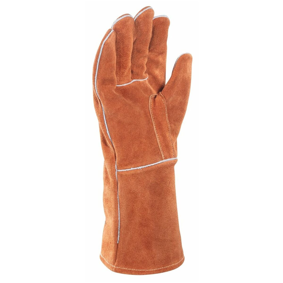 Svetshandske av oxspaltläder med KEVLAR®-sömmar. Med rak och förstärkt tumme för bättre tillämpning vid MAG-svetsning. Testad för elektrostatik.
