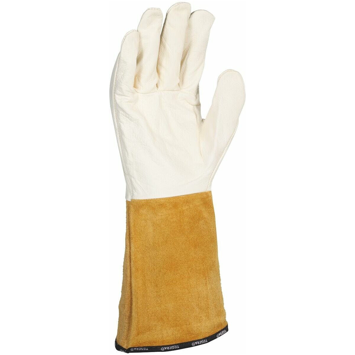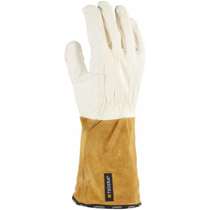 Tegera® 11 CVA. Vattenavvisande allround-svetshandske i getnarvskinn av hög kvalitet. Med förstärkta sömmar och muddar. Beständig mot kontaktvärme på upp till 100 °C.