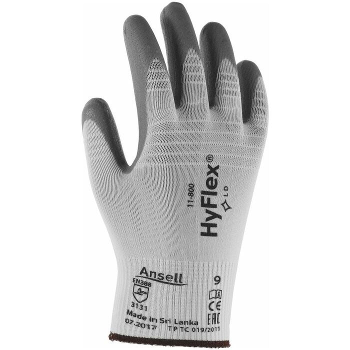 HyFlex®-serien. Mångsidig handske med nitrilskumbeläggning för precisionsarbeten och allmänna arbeten. Erbjuder en bra balans mellan komfort, rörlighet och handskydd. Med Ansell zonz® Comfort Fit Technology™ för minskade trötthetssymtom i händerna. Öko-Tex® Standard 100.