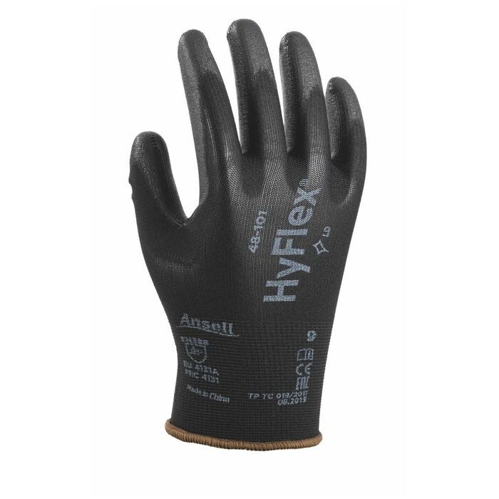 HyFlex®-serien. Finstickad handske med beläggning på insidan för torra arbetsmiljöer. Lämplig för precisionsarbeten, hög andningsaktivitet. För lättare arbeten inom industrin. God rörlighet för exakt hantering av små objekt. Särskilt lämplig för lätta montagearbeten, inspektion, förpackning av smådelar.
