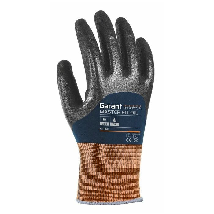MASTER FIT OIL. Med 3/4-nitrilbeläggning över knogarna. Gör handsken mycket lämplig för våta och oljiga arbetsmiljöer.