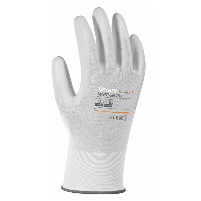 MASTER PU monteringshandske. Bärarmaterialet nylon i kombination med PU-beläggningen ger extremt lätta och flexibla bäregenskaper - som en andra hud. Tack vare 18-masktäthet-stickningstekniken uppnås också en utmärkt rörelsekänsla och fingertoppskänsla.