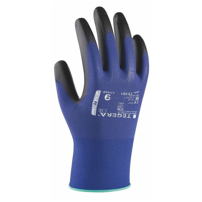 Tegera® 77701. Montagehandske med slät yta för precisionsarbeten. Med hög andningsaktivitet och olje- och vattenavvisande polyuretanbeläggning på handflatan.