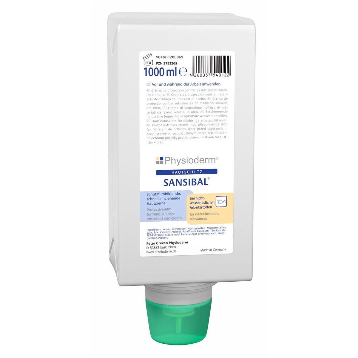 SANSIBAL®. Snabbabsorberande hudskyddskräm för hantering av icke-vattenlösliga arbetsmaterial.