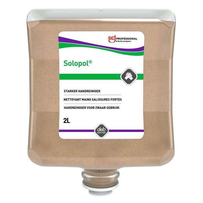 - Hudrengöring stark: Handrengöringspasta Solopol® Classic 2-literspatron (nr 095262 2000B) och passande dispenser (nr 095432 PURPLE).