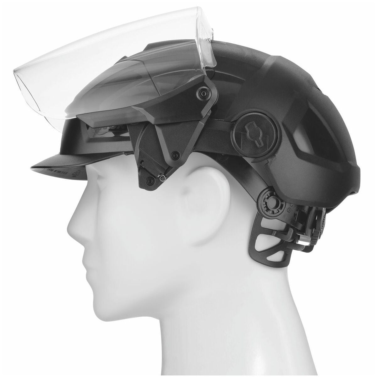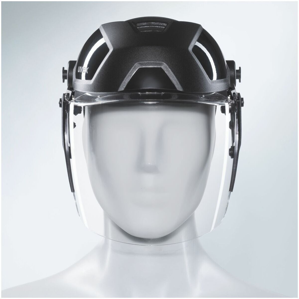 Ansiktsskyddet är baserat på visiret uvex pheos. Den moderna och smala designen kombinerar de tekniska och ergonomiska aspekterna. Inget hindrar bärande under längre tid. Tack vare supravision excellence-beläggningen förblir visiret dimfritt på insidan och reptåligt på utsidan. Tack vare Nano Clean-effekten säkerställs en enkel rengöring. Fjäderdrivningen kan dra upp visiret automatiskt.