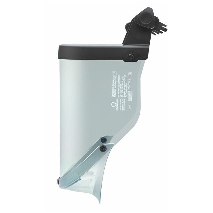 Ljusbågvisir i skyddsklass 2 med svart hakskydd. Förbättrad färguppfattning genom det tonade glaset. Användning vid elinstallationsarbeten eller vid energiförsörjning, där risk för skador på grund av störljusbågar finns (ATVP skyddsklass 14 cal/cm3). Visiret har en hjälmhållare och kan med hjälp av adaptern nr 097831 monteras på elektrikerskyddshjälmar.