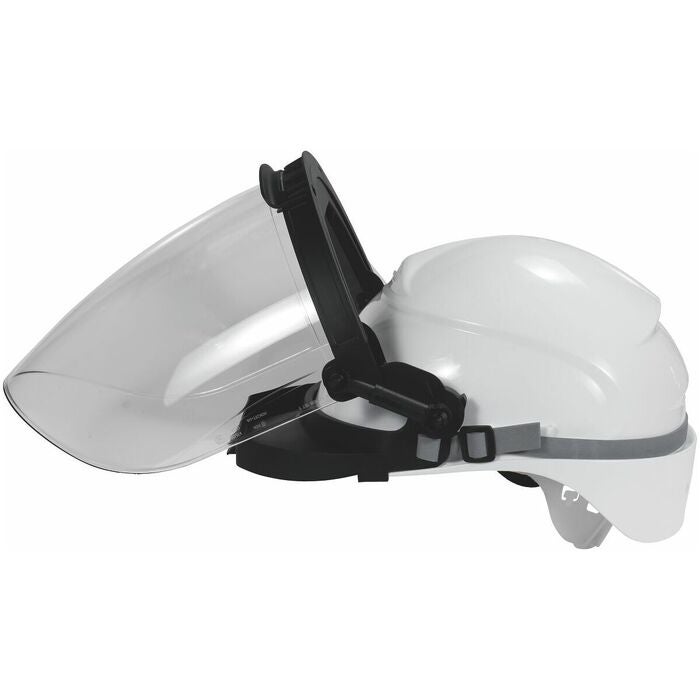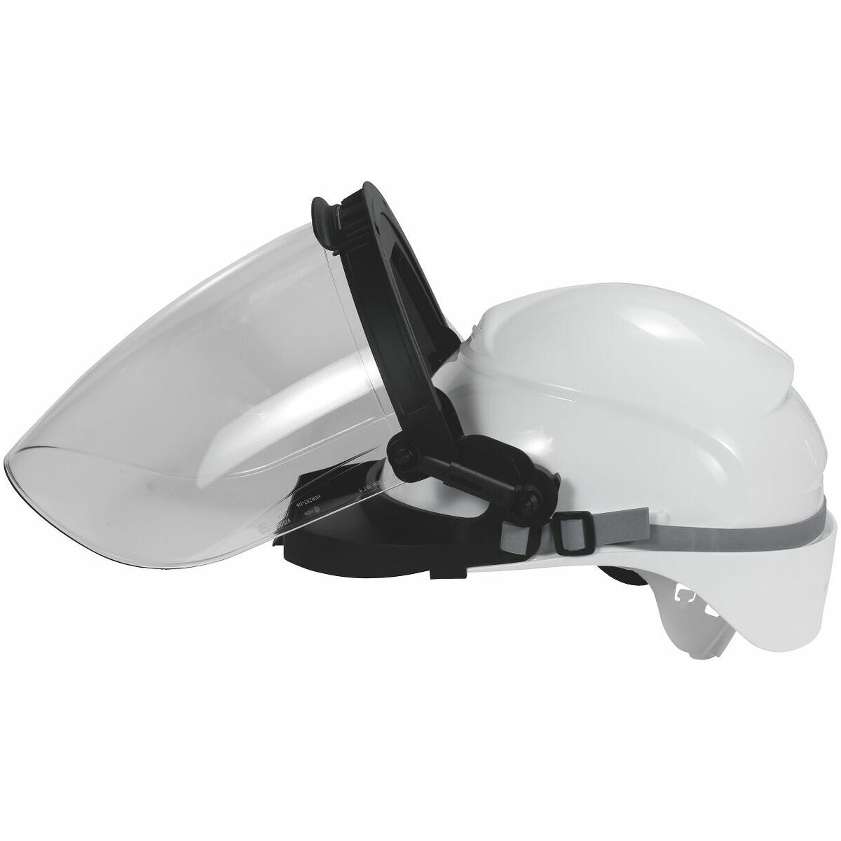Universal-hjälmhållare för kombinerad användning av huvud- och ansiktsskydd. Lämplig för ansiktsskyddssystemet Honeywell Turboshield. Utrustad med en dubbel fällmekanism och ett visirupplåsningssystem. När visiret är uppfällt gör konstruktionen att visiret är bättre balanserat samtidigt som det ger mer plats ovanför huvudet.